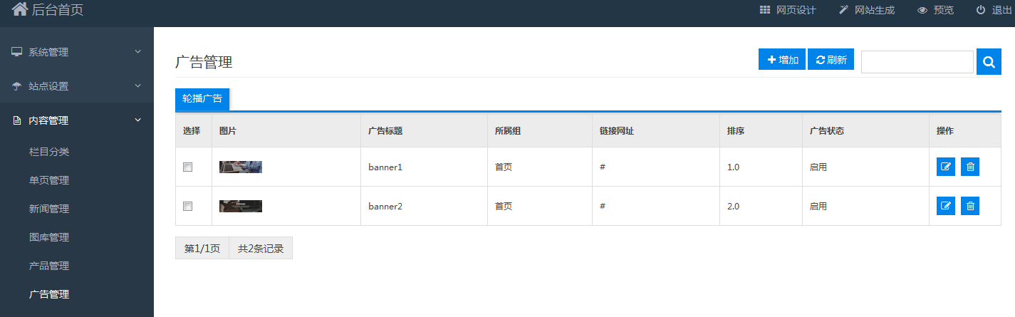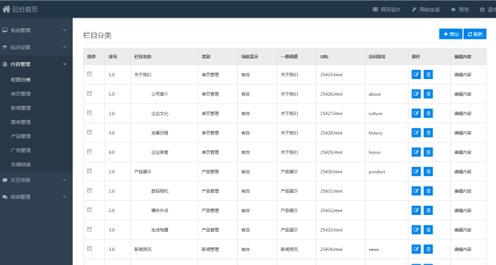 二.单页管理,这块无需多说,设置内容,跟栏目相对应