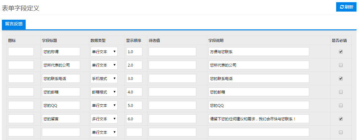 表单字段定义【增加表单内容】